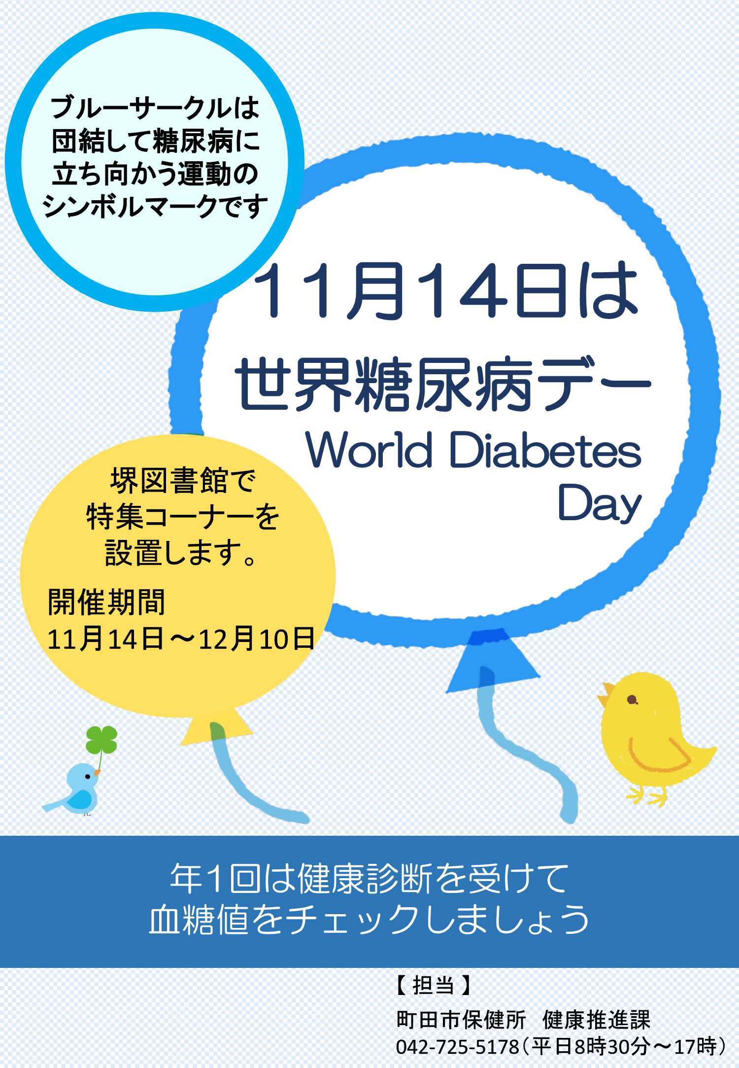 | 堺図書館 | 11月14日は世界糖尿病デー(World Diabetes Day) | 健康推進課 | 042-725-5178 | |