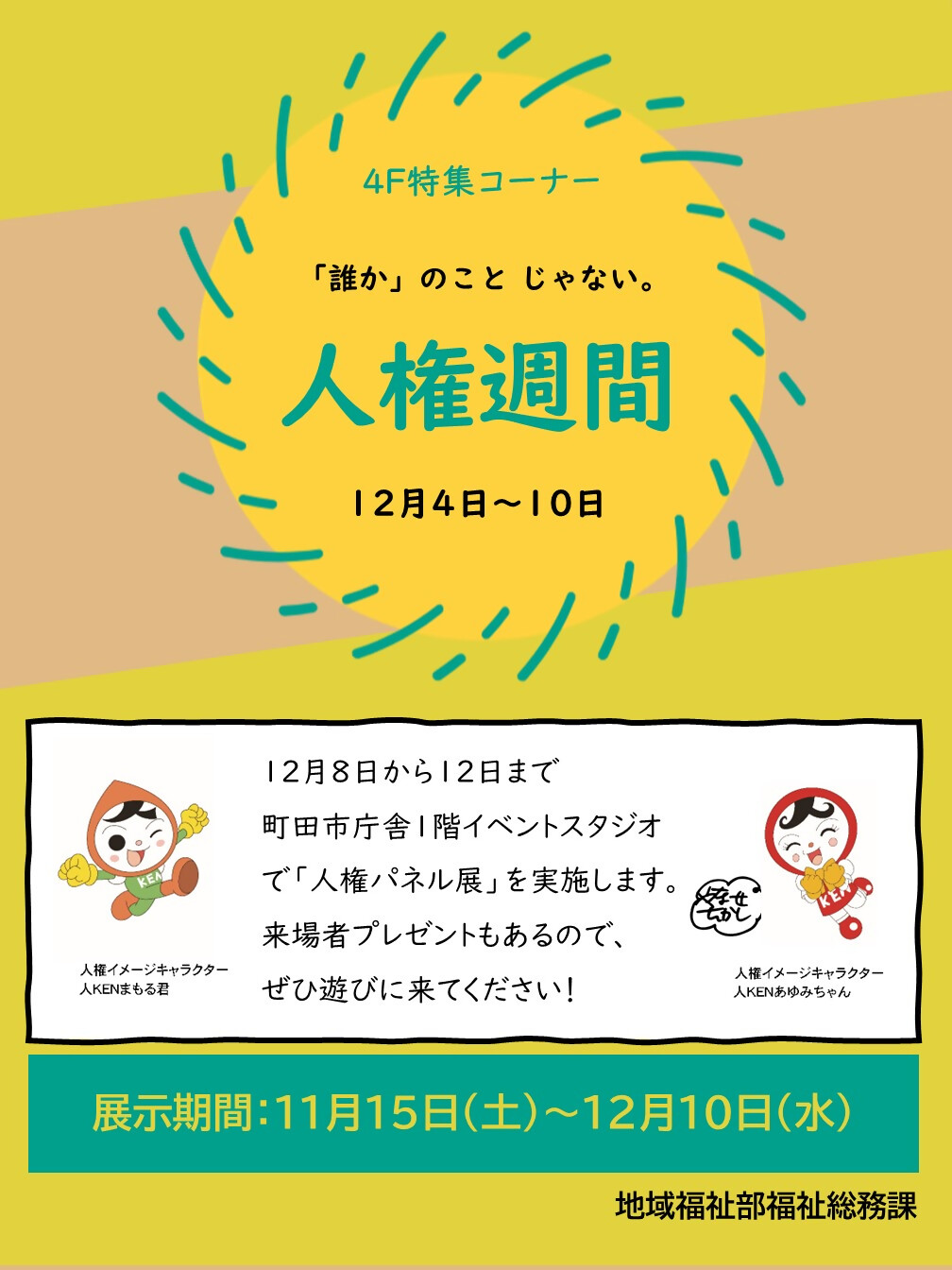 「誰か」のことじゃない。人権週間 | 福祉総務課 | 042-724-2133 |
