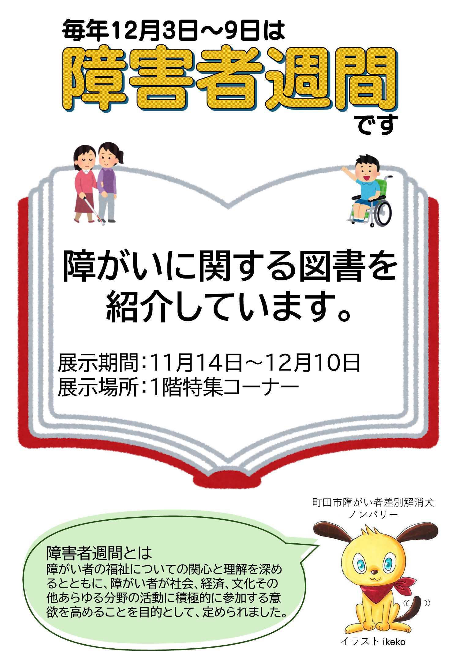 | 金森図書館 | 障害者週間特集 | 障がい福祉課 | 042-724-2147 | |